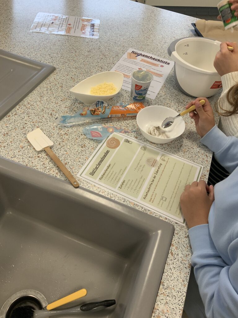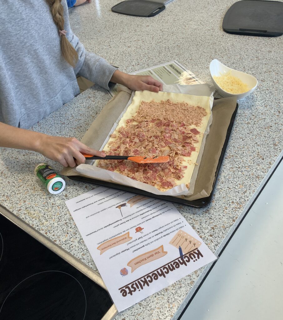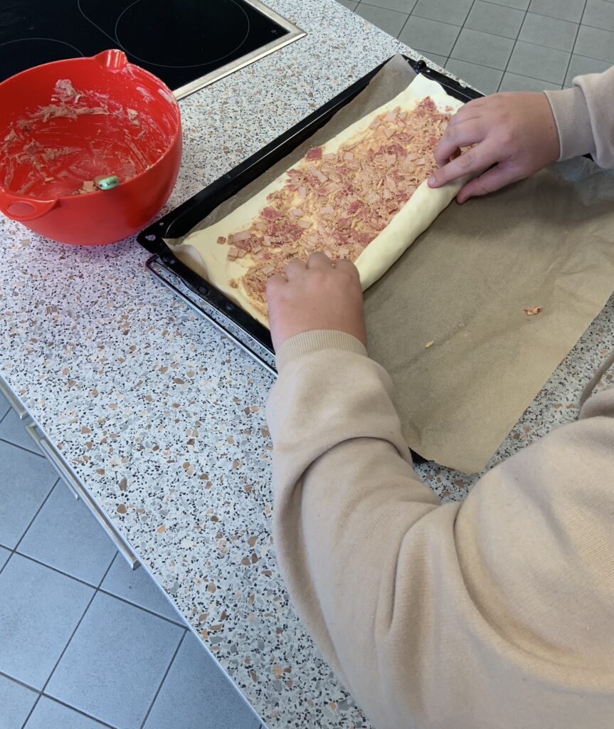 Gestern versuchte sich die AG an Pizzaschnecken. Diese waren wohl so lecker, dass es am Ende keine Zeit mehr für ein Foto des fertigen Gerichts gab: